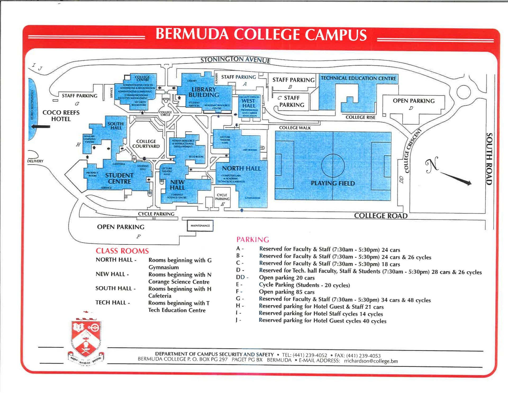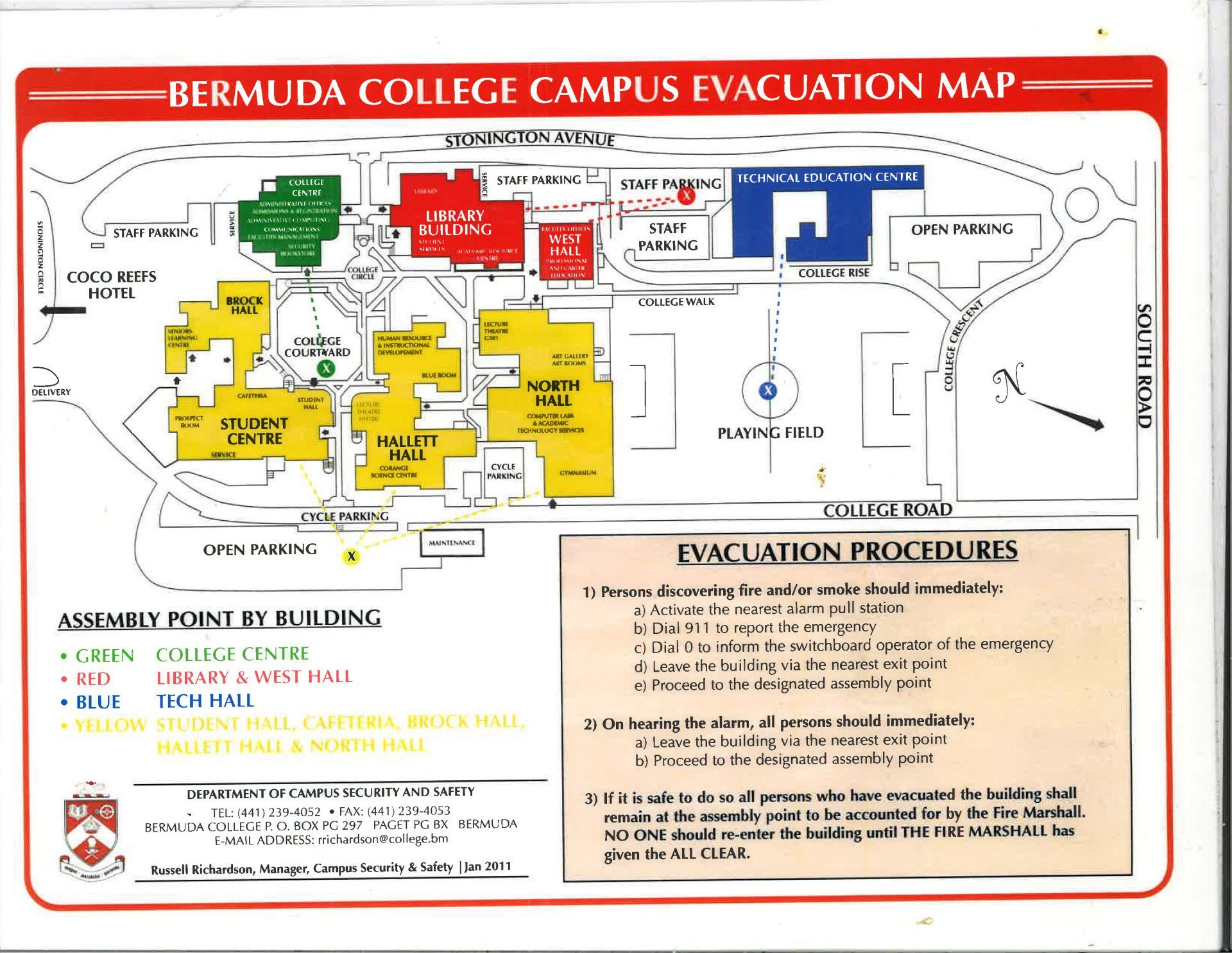 These maps show designated parking areas and where to go in the event of an evacuation. If you would like to schedule a Campus Tour, kindly contact Jamal Darrell in Campus Security, ext.4911.