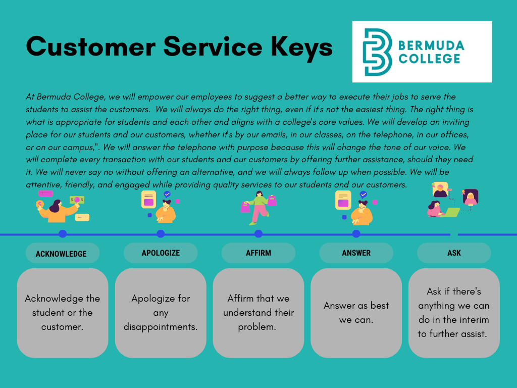 When we do what we can to delight the customer, it will increase the perception of Bermuda College with the public. When we go the extra mile to ensure that each customer leaves with a "WIN," our classrooms will be filled and our co-workers will be eager to interact with us.